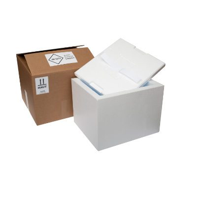 - Each polystyrene isothermal box for transporting biological samples is equipped with a “bubble” cushioning and protection system, a PVC separator plate for separating samples and cold accumulators, and outer packaging in strong double-wall cardboard.