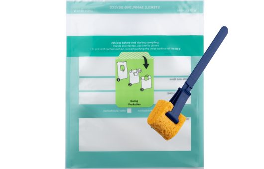 Un sachet de prélèvement avec découpe laser, dimensions 20 x 32,5 cm, proposé avec une zone d’inscription pour l’identification du prélèvement et dont les soudures sont testées et validées pour une utilisation en broyeur, avec étiquette de refermeture repositionnable – colle garantie contact alimentaire